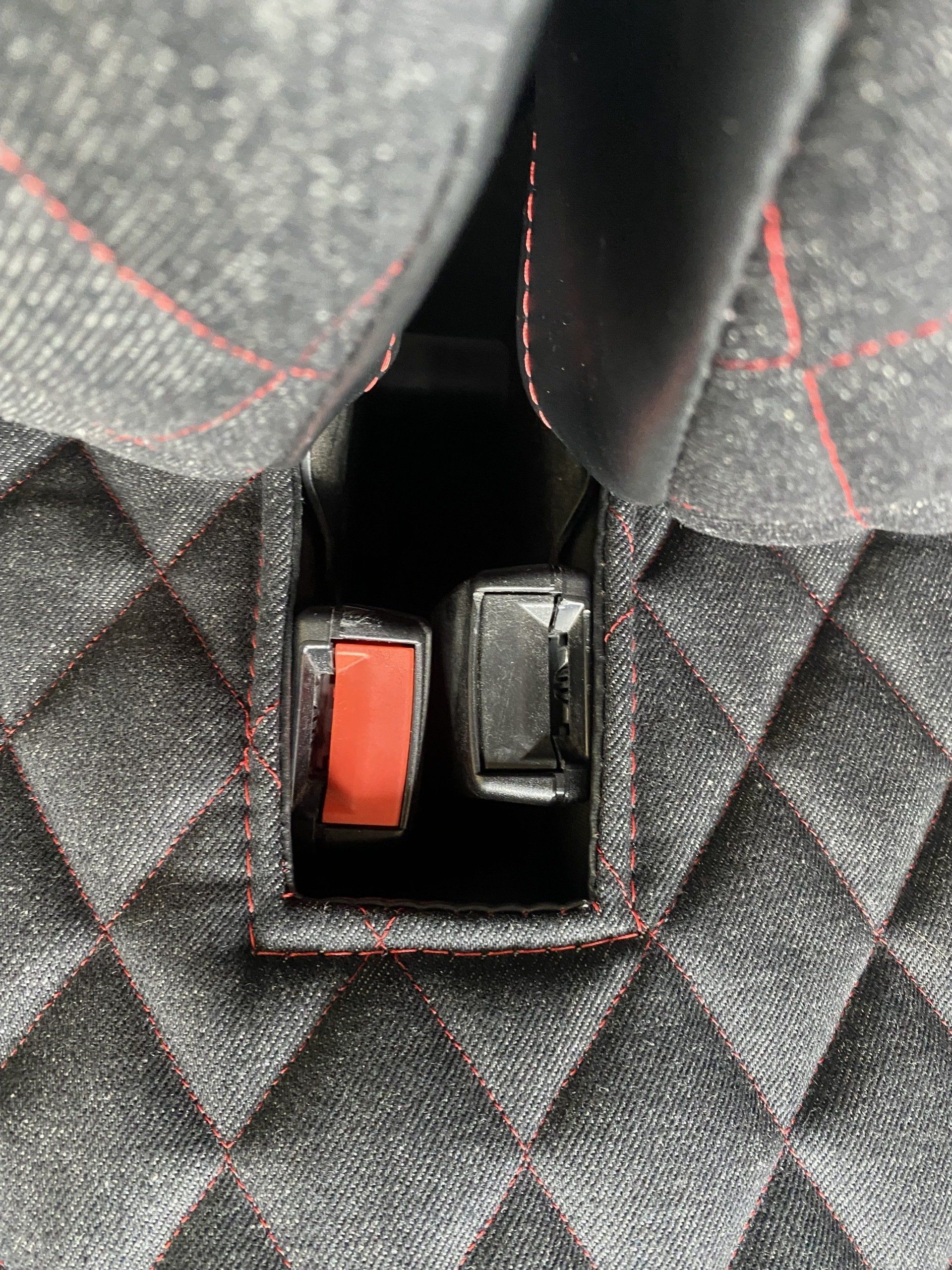 Schnell montiert verhindern unsere Sitzbezüge nicht die Funktionalität Ihres Gerätes: hier die Verwendung des Kofferraums unter der Sitzbank.